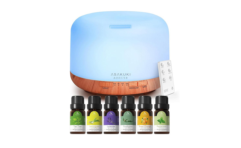 500ml Aromatherapy Humidifier with 14 LED Colors & Auto Shut-Off - 6 Oil Gift Pack.